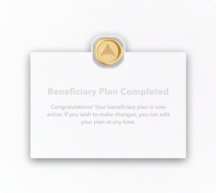 Create a personalized beneficiary plan to pass your Crypto on to your loved ones.